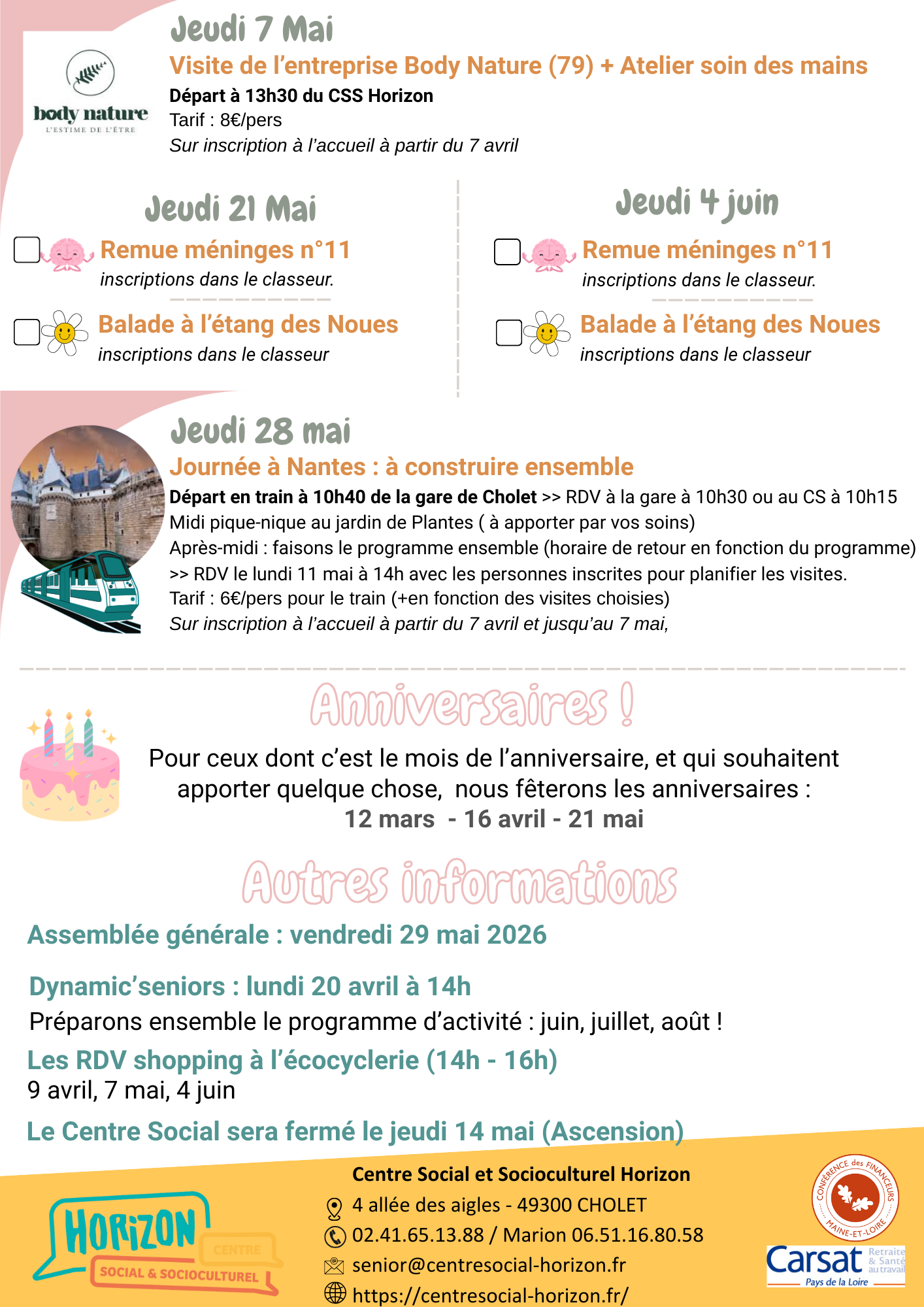Programme seniors printemps 2026 ! par Accueil · 20 février 2026 Animation seniors printemps 2026Télécharger Partager