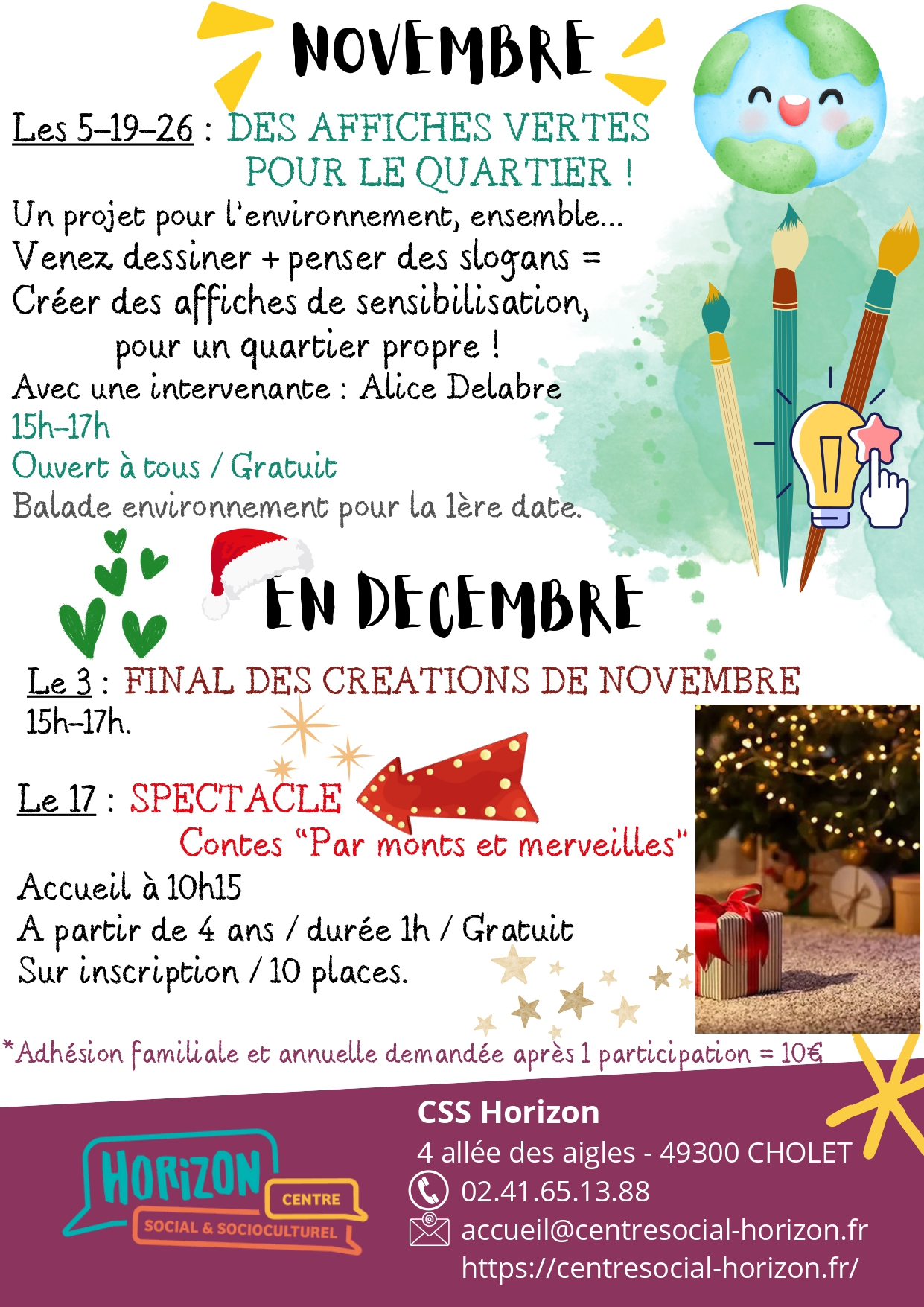 Pour vous inscrire, contactez l’accueil du Centre Social au 02.41.65.13.88