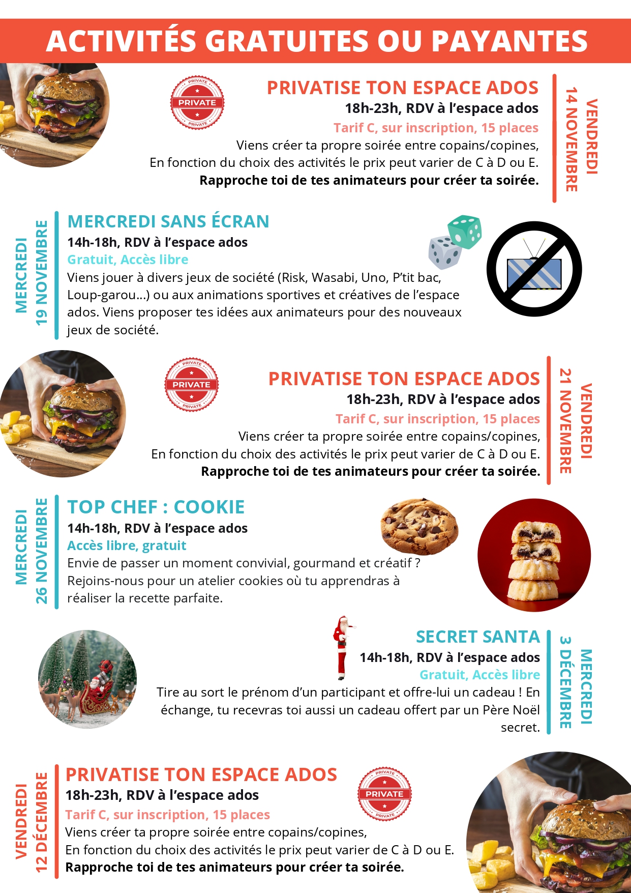 • Le vendredi : 17h00 à 19h00 et pour les + de 14 ans de 19h00 à 21h30