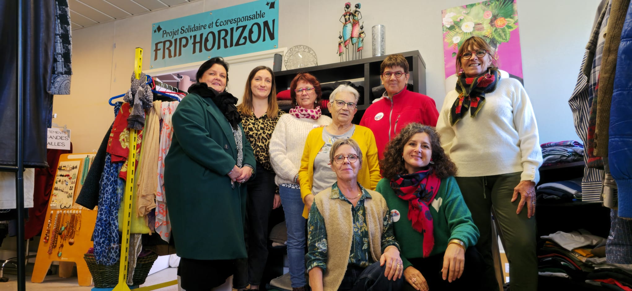 L’équipe d’octobre 2025 accompagnée de Clémence Cesbron, socio-esthéticienne ! Total look Frip’ Horizon porté par Cyrielle !